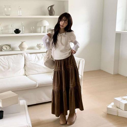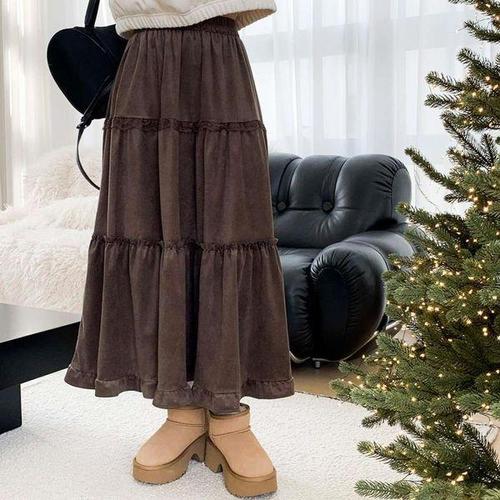 [다잇템][다잇템] 여성 후레아 롱 골덴 티어드 클래식 스커트_23822240_588872