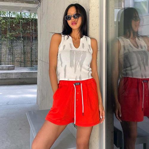 [다잇템_패션]여자 빨간 트랙수트 파란색 워터밤 반바지