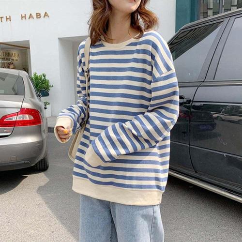[셀럽하우스]줄무뉘 LUAW3852 스트라이프 맨투맨 긴팔 파란색티셔츠