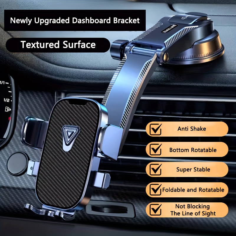 TEMU 자동차 대시보드용 휴대폰 홀더 - 충격 방지, 360° 회전, 다기능 내비게이션 브래킷, 카본 파이버 질감