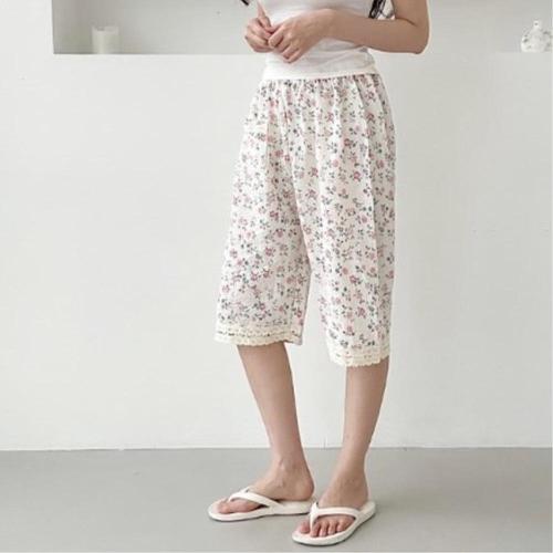[옷자락] 여성 여름 꽃무늬 5부 밴딩 파자마 팬츠