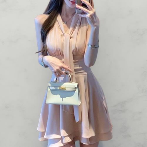 [옷자락]여성 파티 드레스 쉬폰 허리끈 홀터넥 미니 원피스