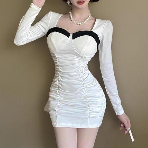 [신상오픈런]여성 하트넥 셔링 미니 원피스 투톤 배색 파티룩