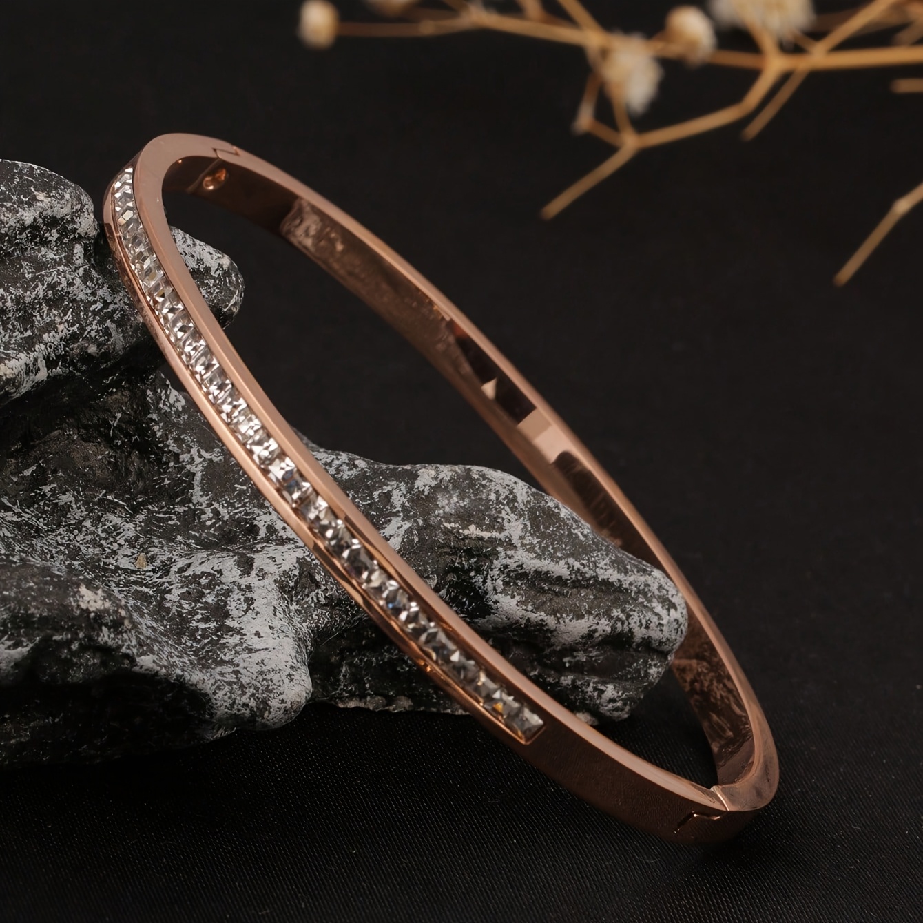 TEMU 1개 스테인리스 스틸 기하학적 타원형 큐빅 지르코니아 스터드 뱅글 팔찌, 고급스럽고 패셔너블, 여성 데일리웨어 및 파티용, 여자친구나 아내에게 완벽한 선물