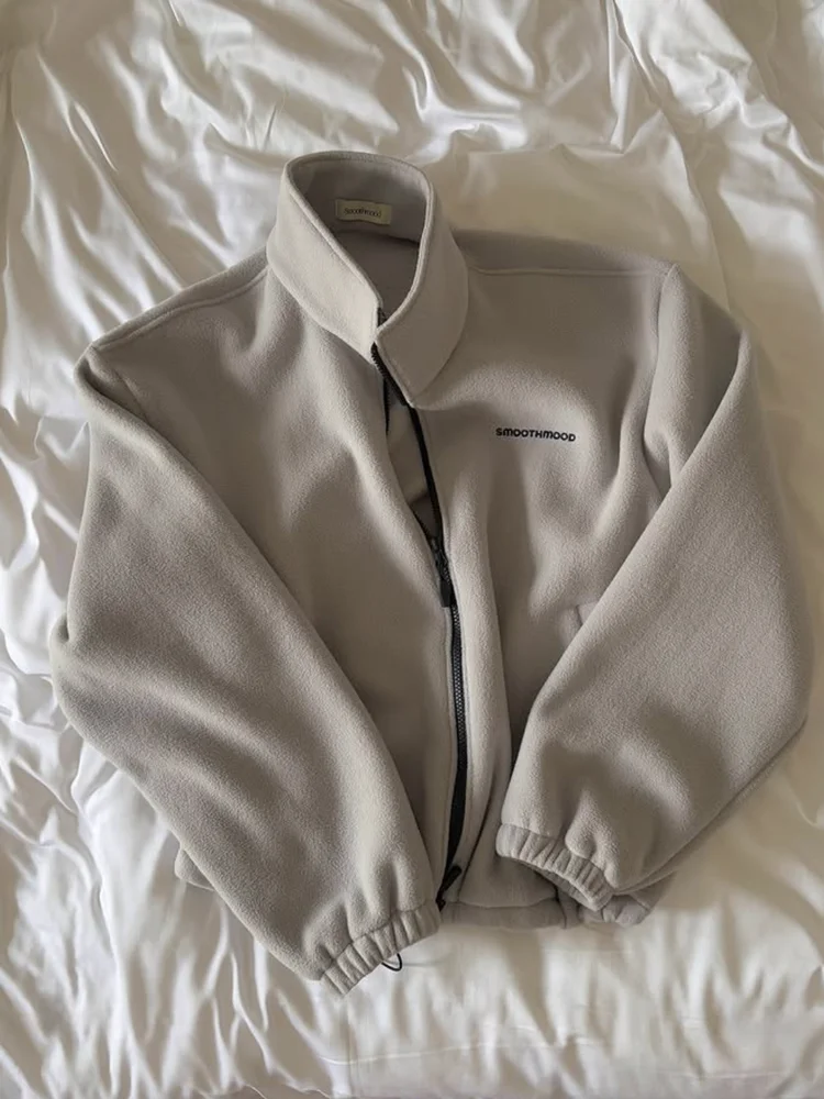 스무스엠디 캐주얼 스타일 지퍼 스탠드 칼라 플리스 여성 아우터웨어 루즈핏 슬리밍 오픈 가디건 스웨트셔츠