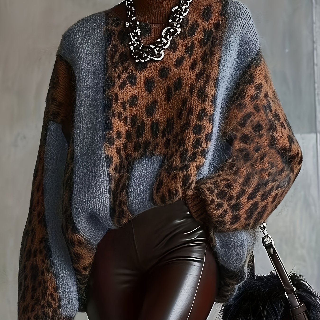 TEMU 2025 가을/겨울 신상 청키 스웨터 | 우아한 여성용 크루넥 긴팔 스웨터, 루즈핏, 부드러움, 세탁기 사용 가능, 기하학적 패턴, 컬러 블록|블라우스|옷|여성의류