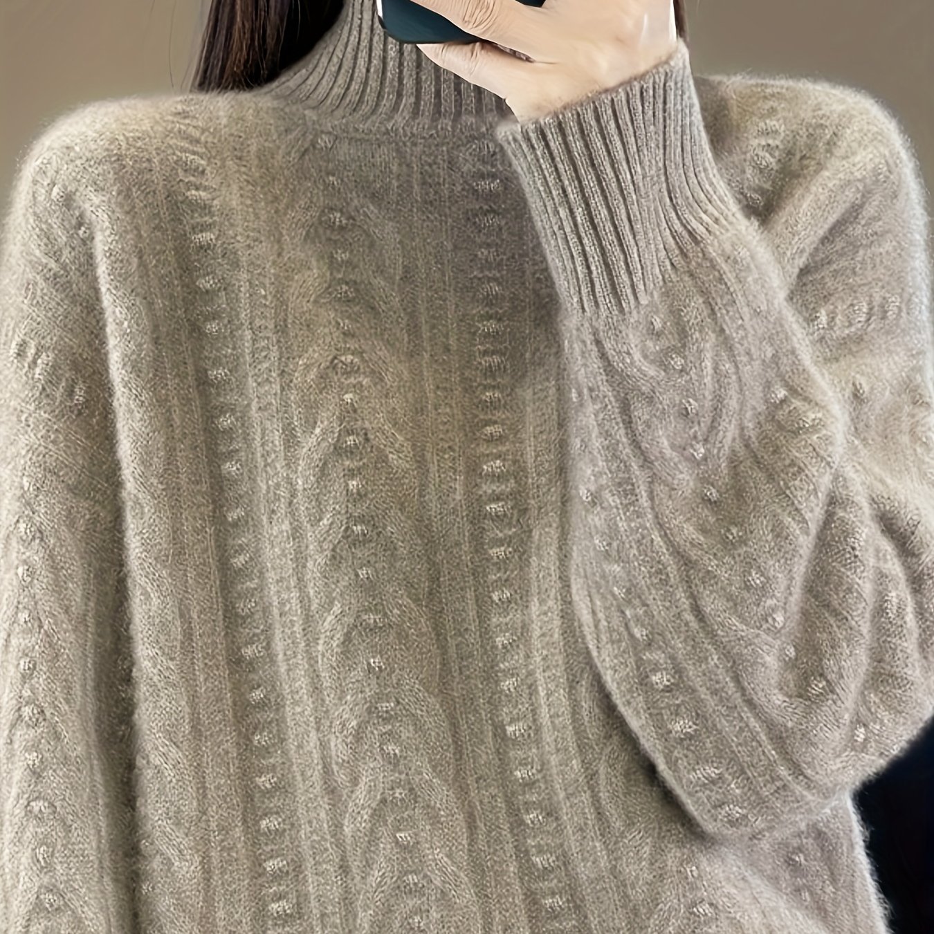 TEMU 여성용 우아한 하이넥 케이블 스웨터 - 부드럽고 두꺼운 루즈핏 긴팔 풀오버, 골지 디테일, 가을/겨울용 단색, 포근하고 스타일리시한 레이어링 아이템, 겨울 의류 | 케이블 스웨터 | 구조, 스웨터 드레스