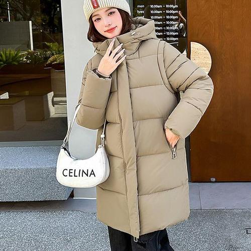 AMII 여성용 미니멀리스트 다운 재킷, 두껍고 따뜻한 탑, 탈착식 캡 패딩 코트, 여성 트렌디 아우터, 12344192, 겨울, 신상 2024