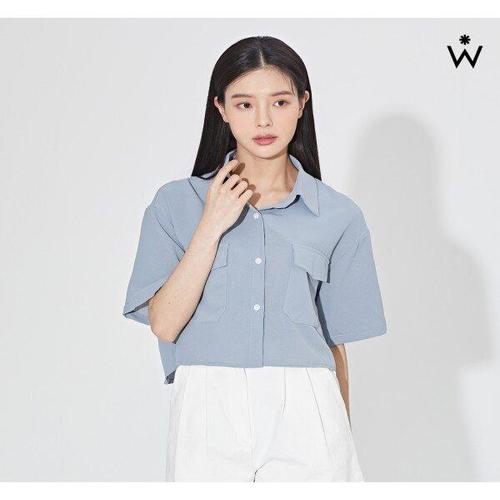 [위시드]베이직 카라 포켓 크롭 반팔 블라우스 (WIAABL180)