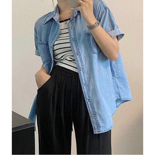 [위시드]카라넥 포켓 데님 반팔 셔츠 (WIBBBL005)