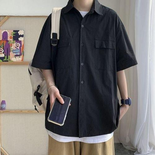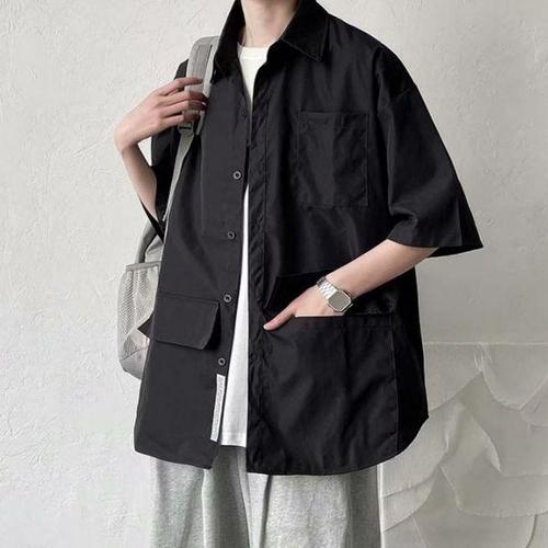 [에이치플러스몰]데일리 디자인 하단 포켓 남자 오버핏 반팔 남방 셔츠