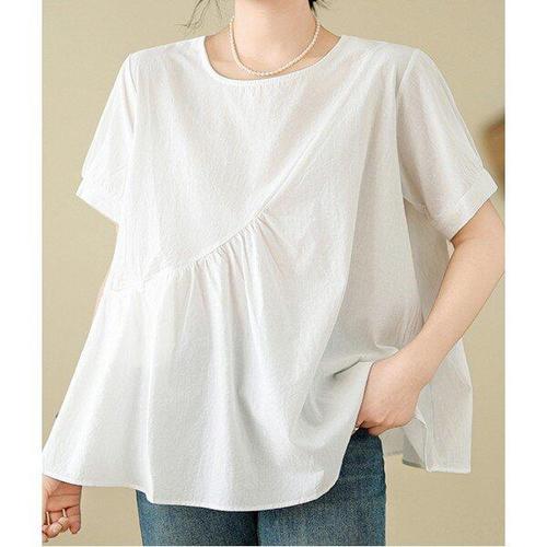 [위시드]캐쥬얼 사선 포켓 반팔 블라우스 (WIBBBL058)