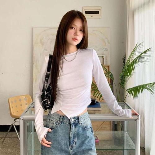 [다잇템]여성 미니멀리즘 편한 슬림 레이온 언발 티셔츠