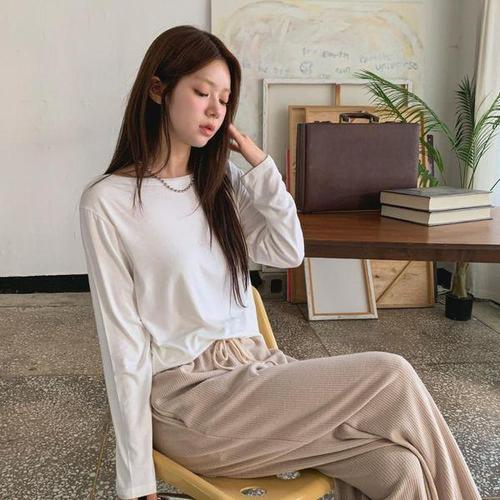 [다잇템]여성용 롱슬리브 편한 레이온 U넥 티셔츠