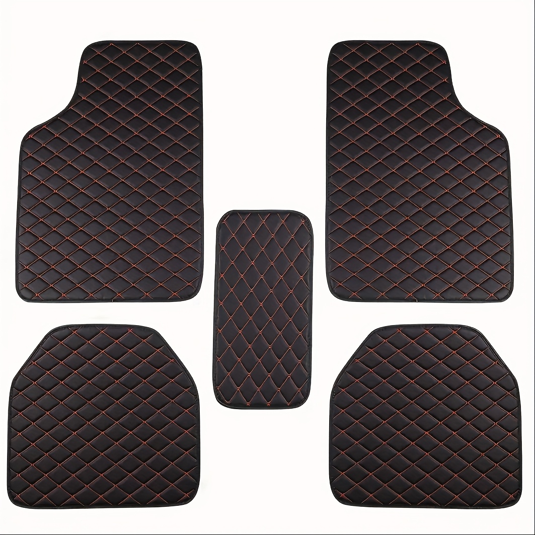 TEMU 5개 세트 범용 자동차 가죽 바닥 매트 - 패턴 미끄럼 방지, 내구성 강한 쉬운 청소 인테리어 액세서리, 차량 보호용 스타일리시 카매트, 고품질 소재, 현대적인 디자인, 일상 사용자용