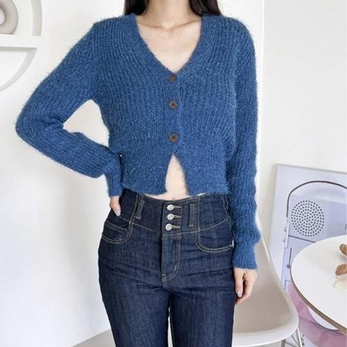 [엄지척]국산 여자 브이넥 크롭 퍼 니트 가디건_19801994_667501