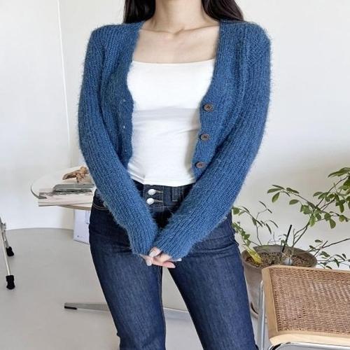 [여리핏_털빠짐X] 르위 여성 앙고라 세미 크롭 니트 가디건 루즈핏 여리여리 긴팔 티셔츠