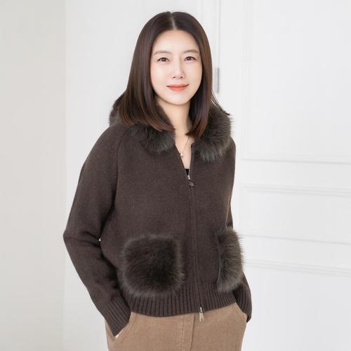 엄마옷 마담4060 퍼후드니트집업가디건-QCA2601001-