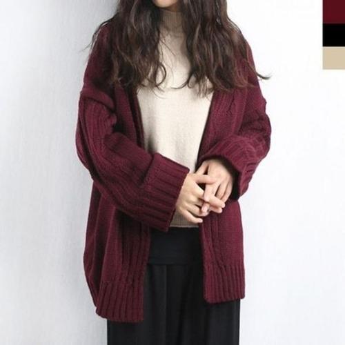 [엄지척]퍼프 기본 3색 여자상의 통소매 카디건 상의 와이드퍼_19798745_667501
