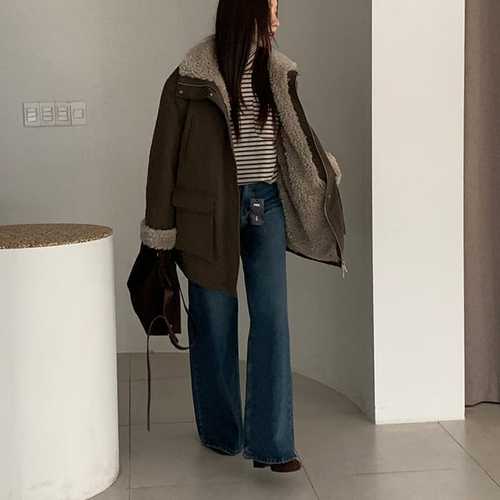 따뜻한 데님 안감 퍼 점퍼 겨울 야상점퍼 아우터 청자켓st 퀼팅점퍼