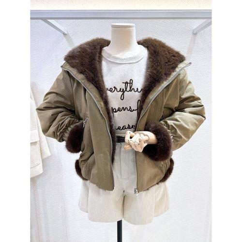 턴키 여성용 후드퍼 인조밍크 하프 야상 패딩 2301