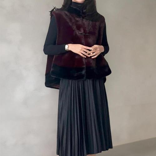 [옷자락]여성 매듭 두 가지 색상 망토 인조밍크 힙커버 중년 퍼 베스트