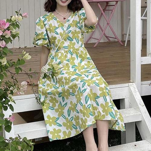 [엄지척]여름원피스 플라워패턴 퍼프소매 스트링 A스커트라인_19600011_667501