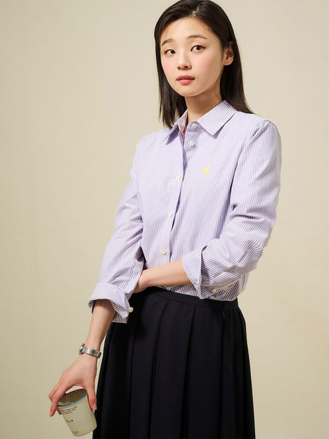 [빈폴레이디스] [Essential] 옥스퍼드 스트라이프 레귤러핏 셔츠퍼플 (BF5164E02U)