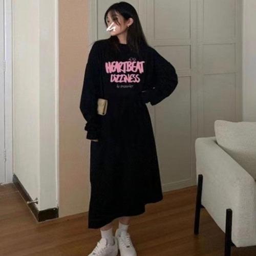 [엄지척]여성 기모 롱원피스 데일리 핑크 퍼플 레터링 원피스_19913902_667501