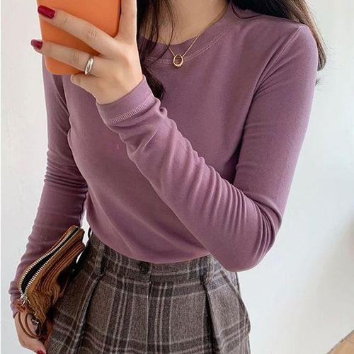 [에이치플러스몰]여자 퍼플 라운드 긴팔 티셔츠 간절기 기본티 긴팔티