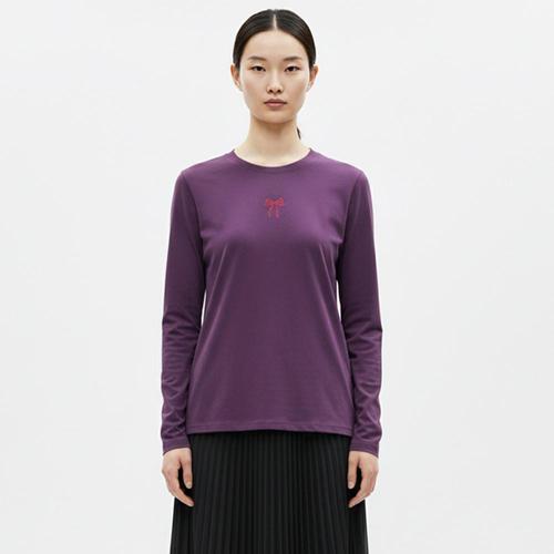 [샵앤][샵앤] 국산 여성 자수 리본 워싱 긴팔 티셔츠 DAI-WSH-20815-딥퍼플