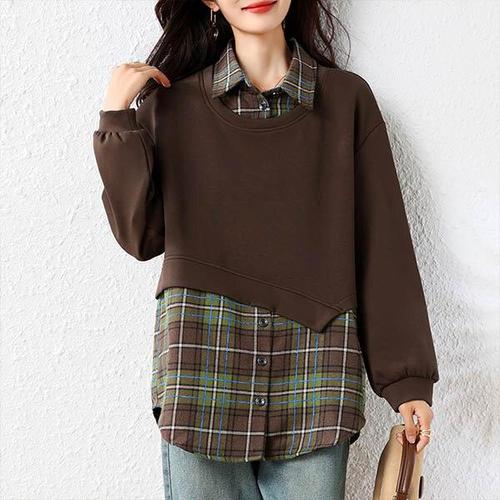 [퍼플핏][빅사이즈] 맨투맨 레이어드 체크셔츠_PA3LS005