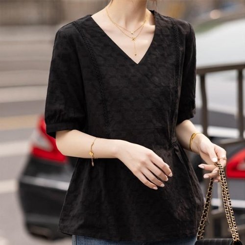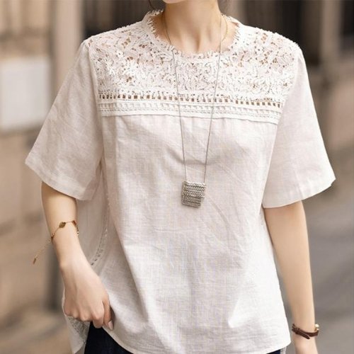 러블리 펀칭 레이스 반팔 블라우스 JSC-d0091