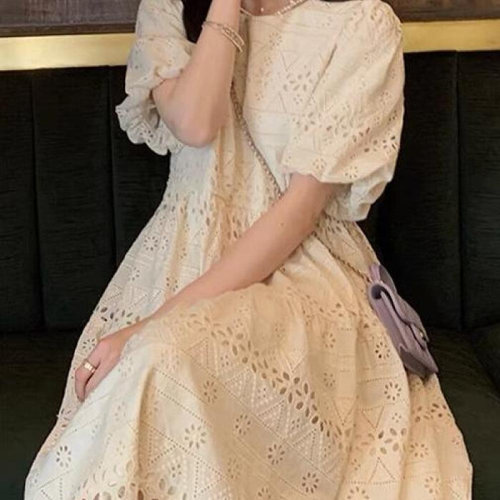 [에이치플러스몰]여름 시스루 데일리 롱 레이어드 클래식 원피스 펀칭