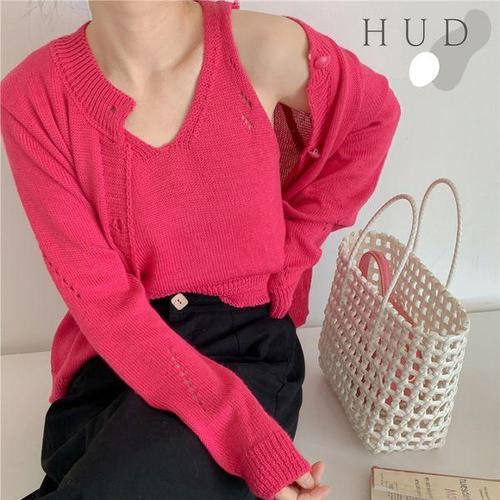 [휴드]루디드 펀칭 가디건 투피스