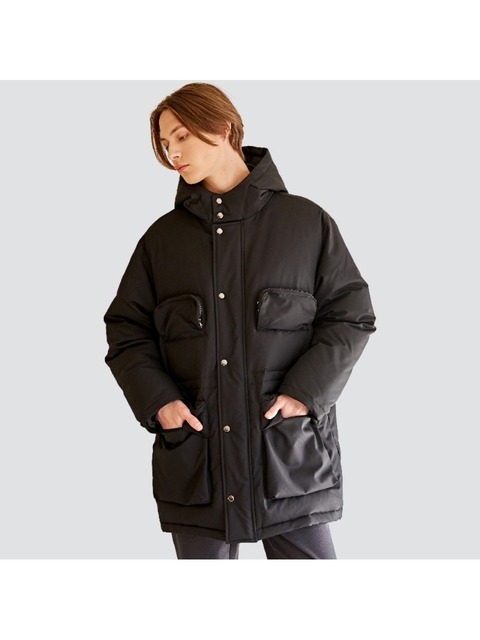 [커스텀어스] 빅사이즈 4-입체포켓 오버핏 하프기장 후드다운점퍼 CTS22WWDJB50 BLA