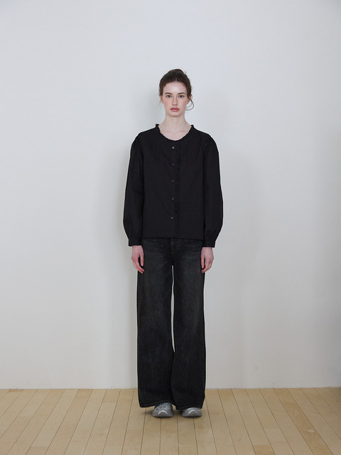 [한정수량] [모리스커밍홈] 브이넥 골드버튼 셔링 블라우스_M2508BL074C