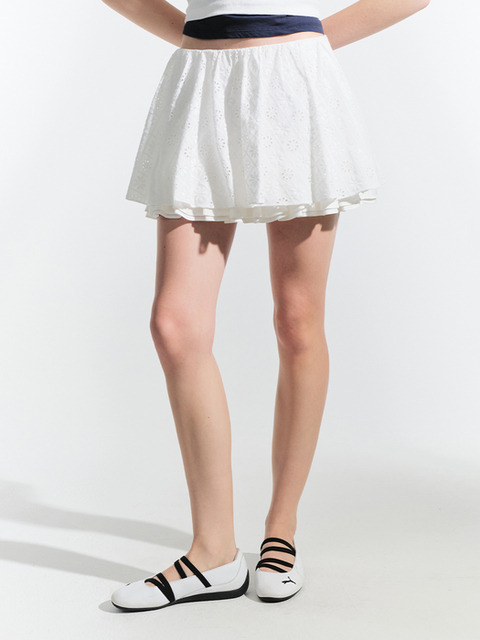 끌로에 플로럴 코튼 블렌드 레이스 미니스커트 P01130705