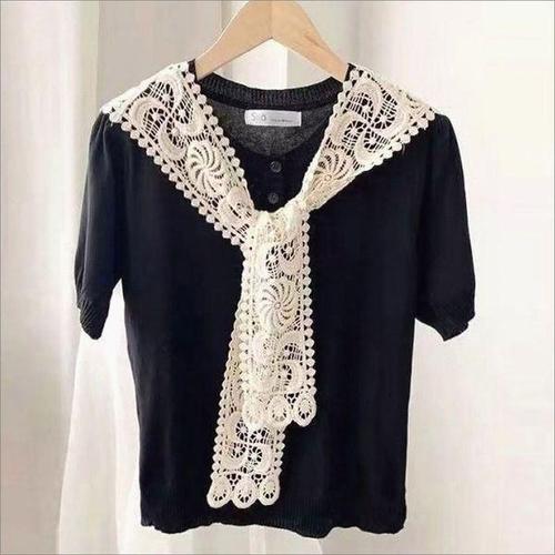 페이크 레이스 소매 커프스 쉬폰 페이크카라 레이어드