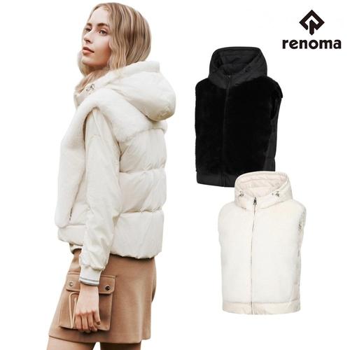 레노마골프 여성 페이크 퍼 경량 구스다운 후드 조끼 DVO-8302