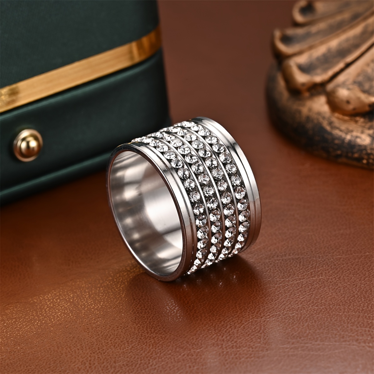 TEMU 남성용 스테인리스 스틸 볼드 와이드 4줄 반지 1개, 선물 및 일상복으로 적합