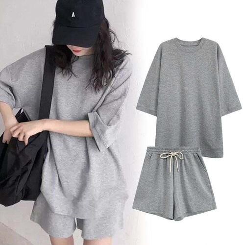 [셀럽하우스]디자인 BVSA8790 세트 반바지 라운드티 기본 편한