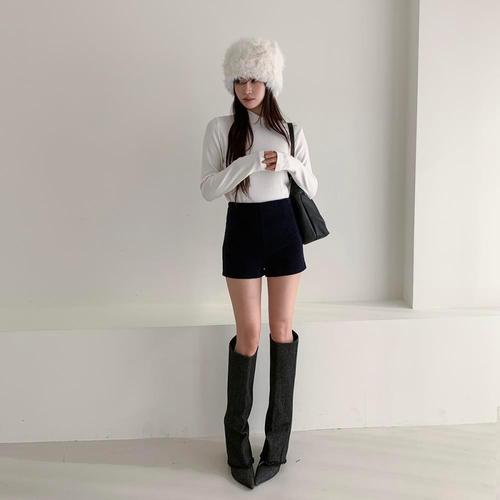 [다잇템] 여성 FW 페이크모직 3부 속밴딩 하프팬츠 미니멀리즘 편한 디자인
