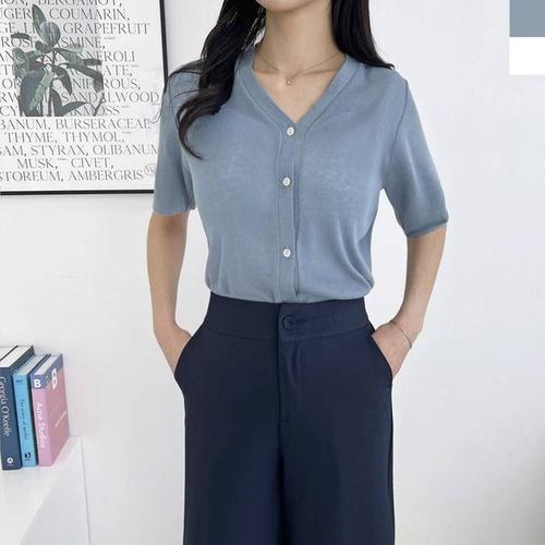 [오노마] ONM 여성 여름 포레스트 반팔 가디건 니트 티셔츠