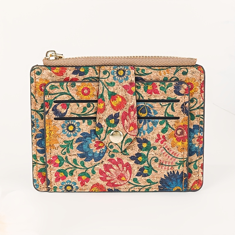 TEMU 여성용 가벼운 코르크 지갑, 카드 슬롯 10개 및 지퍼가 특징이며, 동전 및 카드를 위한 빈티지하고 우아한 소형 지갑입니다.