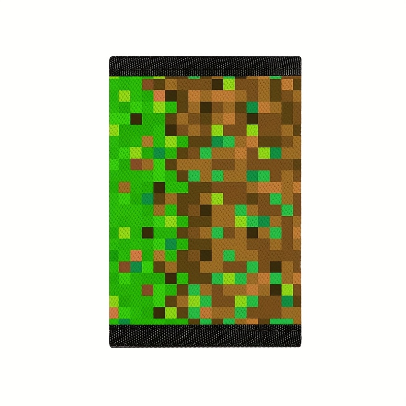 TEMU 기하학적 격자 패턴 3중 지갑, 만화 프린트 동전 지갑, 폴리에스터 소재, 지퍼 포켓 및 키체인 포함 다중 카드 슬롯 디자인, 데일리 사용에 적합, 픽셀 자동차 액세서리, 남아용 지갑, 남아 지갑, 십대 남아 지갑