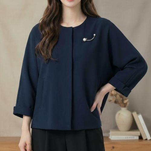 [셀러허브_여성트랜드패션]여성 미니 숏 노카라 케이프 자켓 브로치포인트