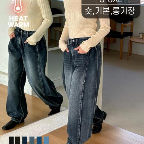 포인 / 발열기모/기장선택 크리트 워싱 2WAY 와이드 데님 팬츠 6color
