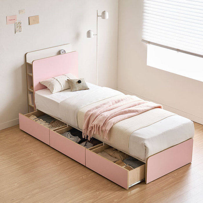 장인가구 [비밀특가] 장인가구 드림업 LED 수납 헤드 미니 원룸 서랍형 싱글 침대프레임 S+포켓매트