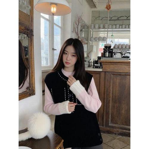 [베스띠벨리]블랙 포켓 스티치 니트 베스트 BHVCX2968